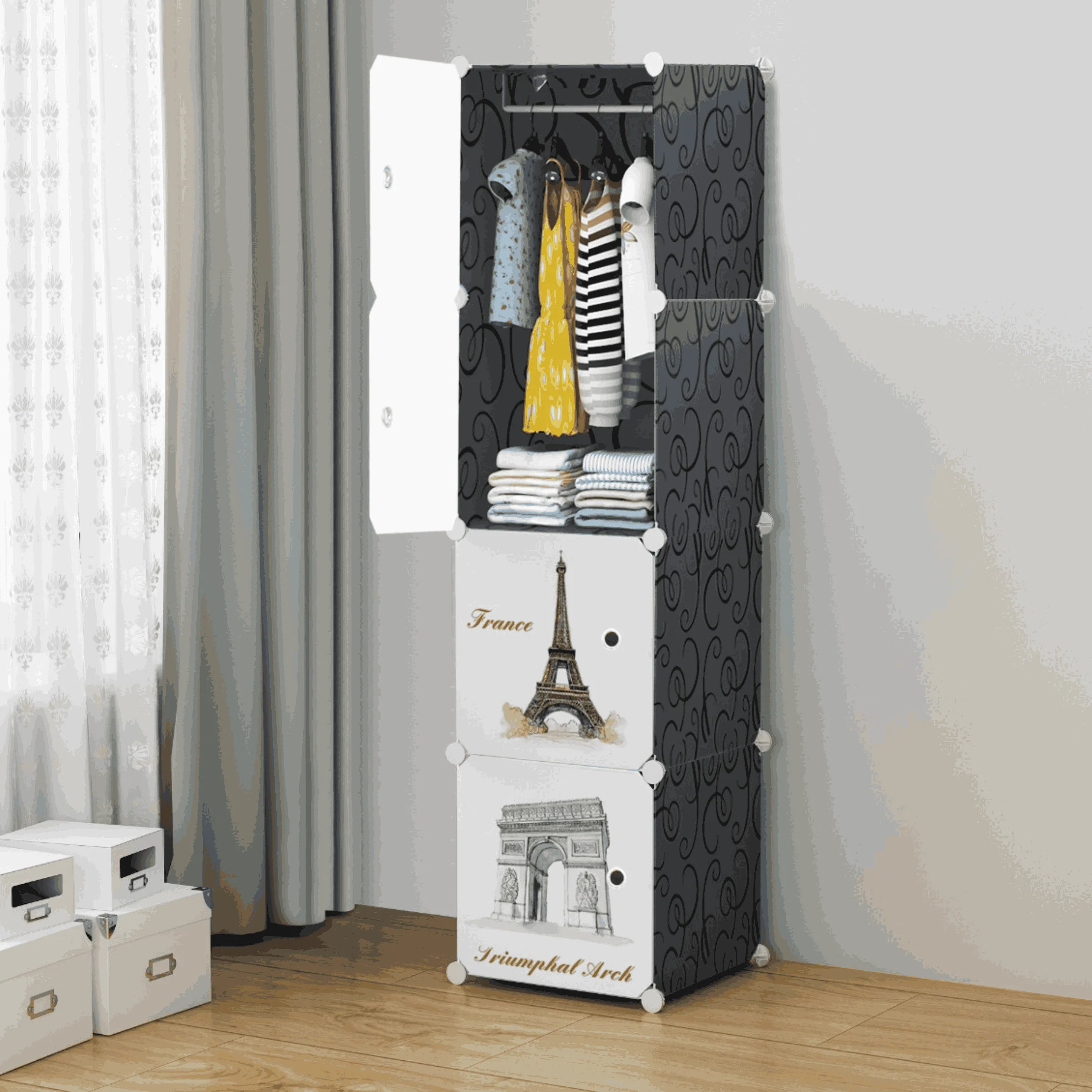 ❀ This wardrobe also includes hanging sun-dried areas for easy access to your garments. It's available in multiple colors such as black, baby pink, lemon green, and sky blue, allowing you to choose the one that complements your room's décor. Easy to clean and maintain, the 4 Door Plastic Wardrobe combines practicality with modern design for a perfect storage solution in any bedroom.