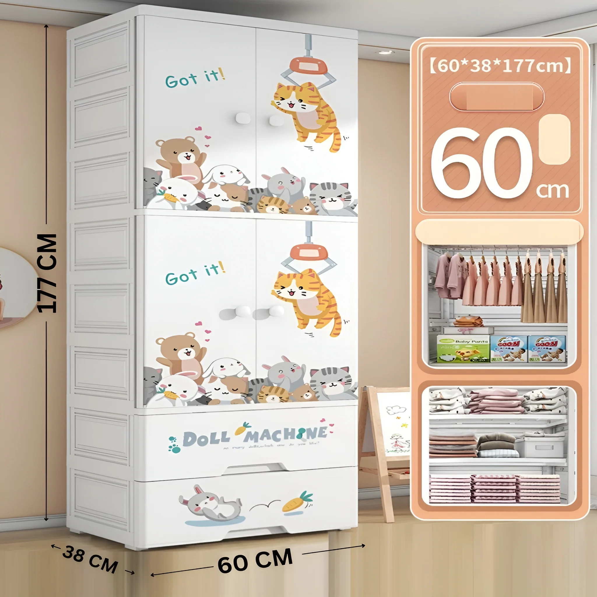 Cute Cartoon Kids Wardrobe Collection – Plastic Storage Cabinet for Kids Room (60 * 38 * 177 Cm)