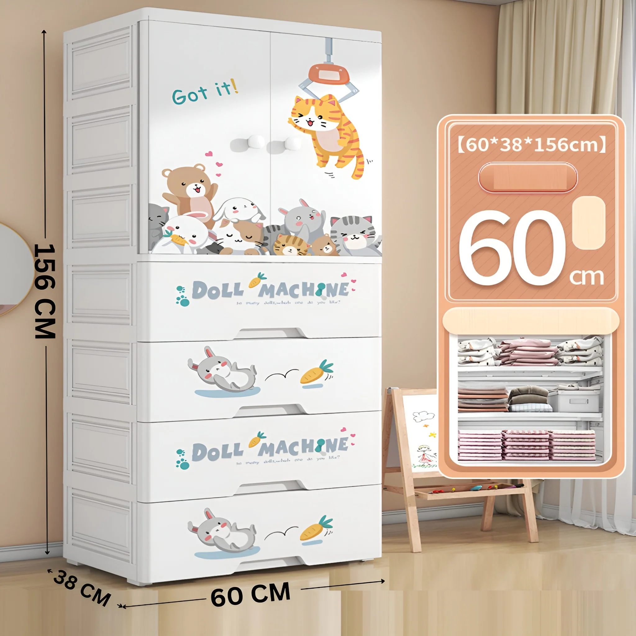 Hard Plastic Kids Wardrobe – Safe, Stylish & Spacious Design (60*38*156 CM)